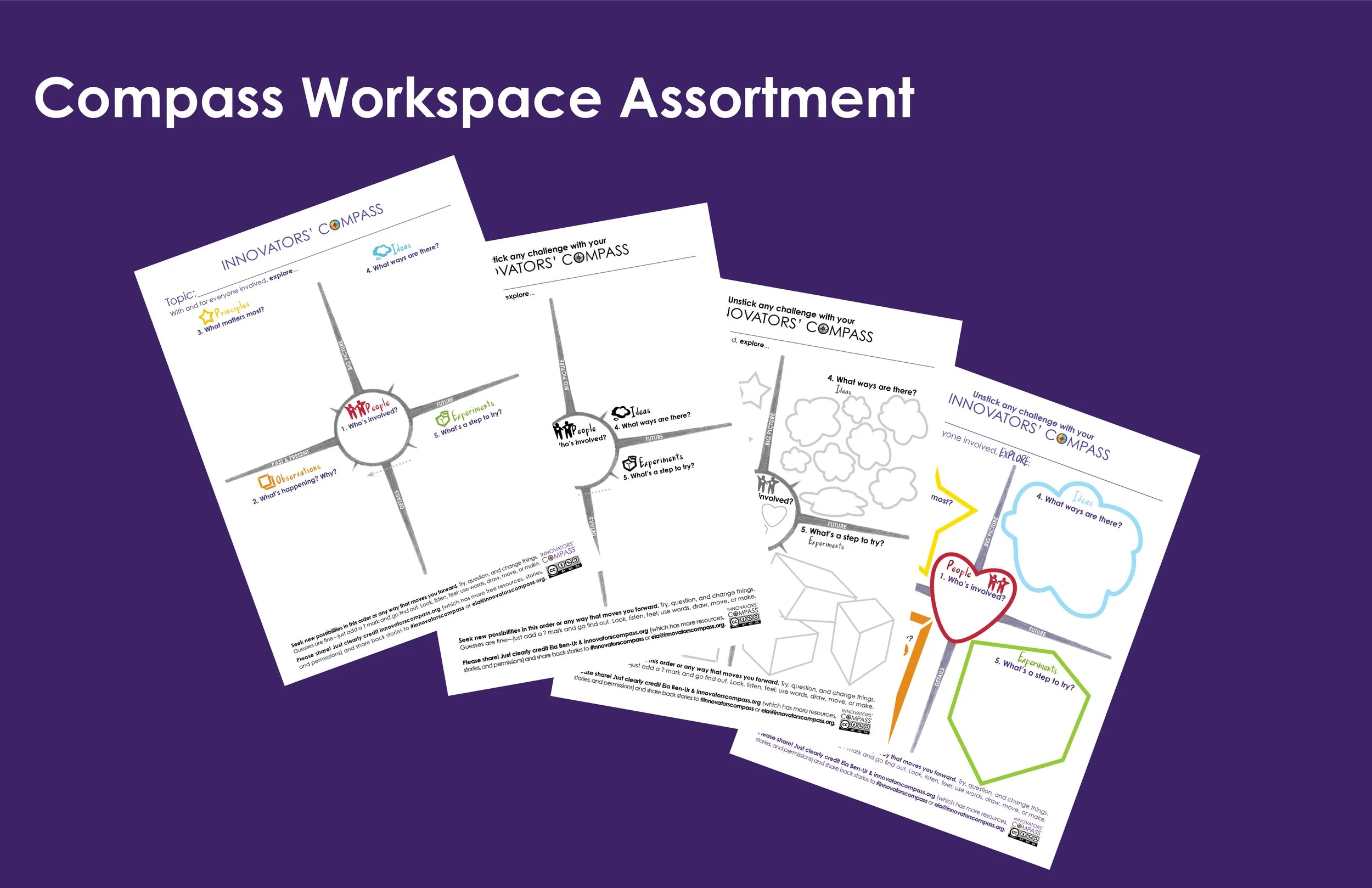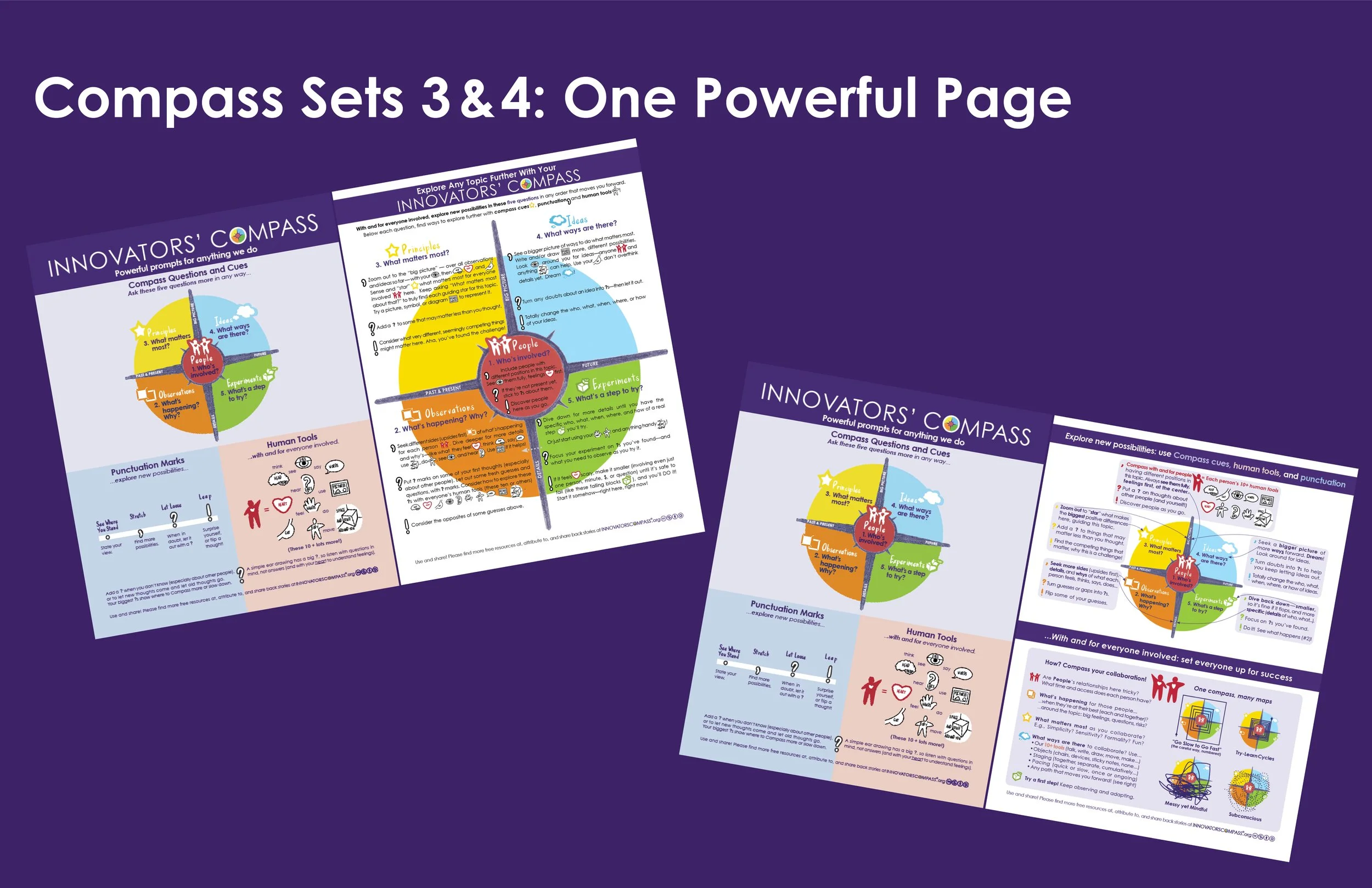 Here are three different options for handouts that prompt deeper work with Innovators’ Compass, Punctuation, and Human Tools.