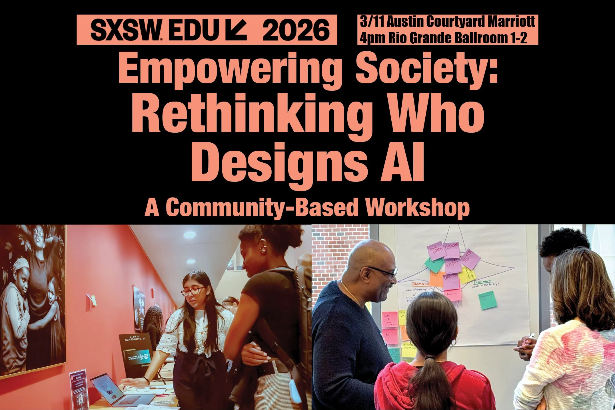 Ela and the Dawsons were instrumental in the start of each others’ programs a decade ago, and Ela’s stayed connected as a design reviewer for the iFp program and the projects. Earlier this year, they asked her to co-develop a workshop for their Transforming AI summit and MIT Museum workshop series, bringing students and community members from outside iFp on this journey. We pulled in two friends from the Robotics and AI Institute—Pedro (also an iFp parent), Caitrin (also an Olin College professor)—plus iFp students and wound up with a thought-and-action-provoking workshop that felt so right for SXSW EDU!